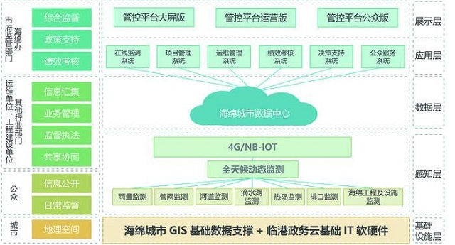 海綿城市管控單位:通過信息化平臺(tái)及地理空間信息系統(tǒng),管理項(xiàng)目、地塊、低影響開發(fā)設(shè)施、地下管線等海綿設(shè)施,實(shí)現(xiàn)海綿設(shè)備與設(shè)施養(yǎng)護(hù)智能化;通過海綿城市監(jiān)測網(wǎng)絡(luò)實(shí)現(xiàn)主要監(jiān)測點(diǎn)數(shù)據(jù)的在線采集與集中顯示,對海綿城市運(yùn)行數(shù)據(jù)進(jìn)行統(tǒng)一管理與統(tǒng)計(jì)分析,定期向上級監(jiān)管部門上報(bào)數(shù)據(jù)。