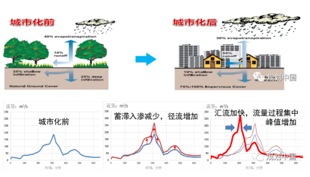 “快速的城鎮化急劇改變了城市的下墊面,再加上氣候變化的疊加影響,水循環過程發生了顯著變化,造成城市內澇加劇?!?王浩說。