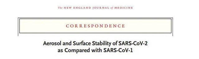 《新英格蘭醫(yī)學雜志》上發(fā)表的一項最新研究顯示,新冠病毒可以懸浮在小于5微米的飛沫中(即氣溶膠)約半小時,然后落下來并停留在物體表面長達數(shù)小時。
