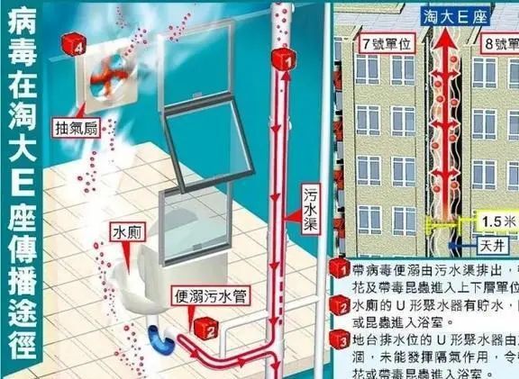 這不得不提起2003年的SARS病毒通過香港下水道系統(tǒng)造成的超級傳播事件。請看下圖↓