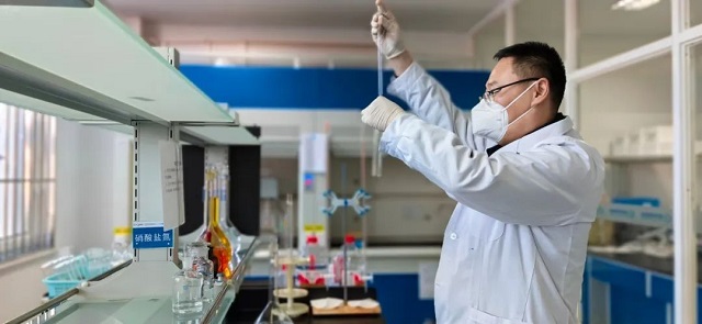 工作人員對水樣進行化驗檢測