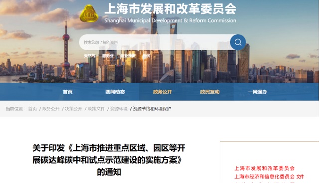 《上海市推進(jìn)重點(diǎn)區(qū)域、園區(qū)等開展碳達(dá)峰碳中和試點(diǎn)示范建設(shè)的實施方案》印發(fā)