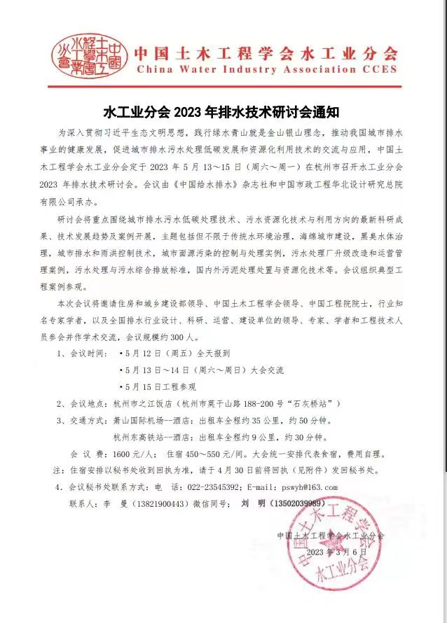 2023水工業分會排水技術研討會會議通知
