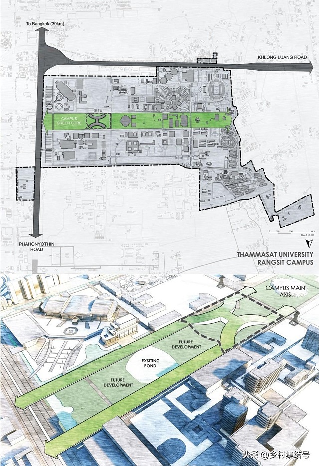 于是,為了振興其所處的土地,泰國國立法政大學(Thammasat University),在設計師的幫助下,重新利用了建筑上被忽視的236806平方英尺的(約22000平方米)屋頂空間,包括有7000平方米的農業區,打造了一個亞洲最大的屋頂有機農場。農場融合了可持續糧食生產、能源再生、有機廢物、水資源管理,創造了校園綜合循環經濟,同時農場還可滿足城市休閑,是一處公共活動空間。接下來,小編就說一說這座屋頂農場的具體設計。