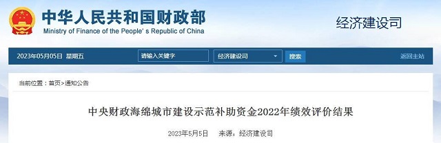 財政部公布2022年海綿城市建設示范補助資金績效評價結果