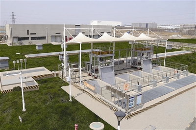 據(jù)介紹,規(guī)劃伊始,就以“調(diào)蓄池+河道+道路海綿工程”為設(shè)計(jì)理念的海綿大系統(tǒng),結(jié)合調(diào)蓄池項(xiàng)目單體海綿小系統(tǒng),全面踐行海綿城市“滲、滯、蓄、凈、用、排”建設(shè)理念。雨水調(diào)蓄池是海綿系統(tǒng)中重要的雨水收集設(shè)施,主要是把雨水徑流的高峰流量暫留池內(nèi),待最大流量下降后再?gòu)恼{(diào)蓄池中將雨水慢慢地排出,達(dá)到既能規(guī)避雨水洪峰、提高雨水利用率,又能控制初期雨水對(duì)受納水體的污染效果,還能對(duì)排水區(qū)域間的排水調(diào)度起到積極作用。2#雨水調(diào)蓄池中初雨調(diào)蓄池可容納收水范圍內(nèi)初期5毫米、總量10000立方米降水,有效地控制初期雨水沖刷道路造成的溢流污染、避免污水入河。隨后可以通過(guò)“中間+末端”的系統(tǒng)錯(cuò)峰調(diào)蓄,片區(qū)排水滿足下游河道容納能力的同時(shí),使得雨水資源利用最大化,調(diào)蓄雨水容量達(dá)30000立方米,可滿足區(qū)域內(nèi)綠化澆灑等再生利用。同時(shí),調(diào)蓄池廠區(qū)通過(guò)綠化結(jié)合微地形設(shè)計(jì),形成無(wú)組織徑流,實(shí)現(xiàn)無(wú)雨水管道設(shè)計(jì),直接進(jìn)入調(diào)蓄池頂部綠化空間,植草溝、生態(tài)邊溝的滲滯利用后,經(jīng)調(diào)蓄池池頂溢流口,直接進(jìn)入雨水調(diào)蓄池,有效提升雨水的資源化利用。
