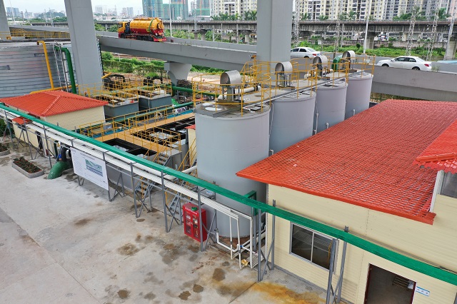 節約用地是本項目處理工藝的重要亮點。易新貴介紹說,天河區屬于中心城區,土地資源緊缺,一體化設備高度集成,占地面積小,非常適合城市中的污水處理需求,“這里是高架橋旁,原來是用來停放城管功能用車,用來做一體化污水處理廠,大大節約了用地成本,也避免了選址難題。”