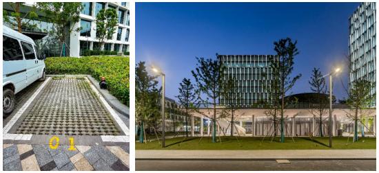 通過“園區+海綿”,打造“碧水環洲”的花園式科技園區。項目應用海綿技術包括: