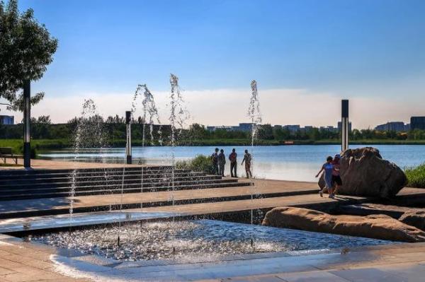 清新的夏日傍晚,三五成群的孩子在親水平臺上嬉戲,微型噴泉、景觀小品、夜景燈光、塑膠跑道,讓周邊居民和企業員工盡情感受人與自然的和諧。“我是旁邊金融公司的員工,喜歡跑馬拉松,每天我都會圍著景觀湖跑一圈,不僅可以鍛煉身體,還有許多風景可以欣賞。”市民秦芳告訴記者。