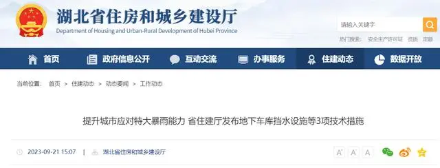 提升城市應對特大暴雨能力 湖北省住房和城鄉建設廳發布地下車庫擋水設施等3項技術措施