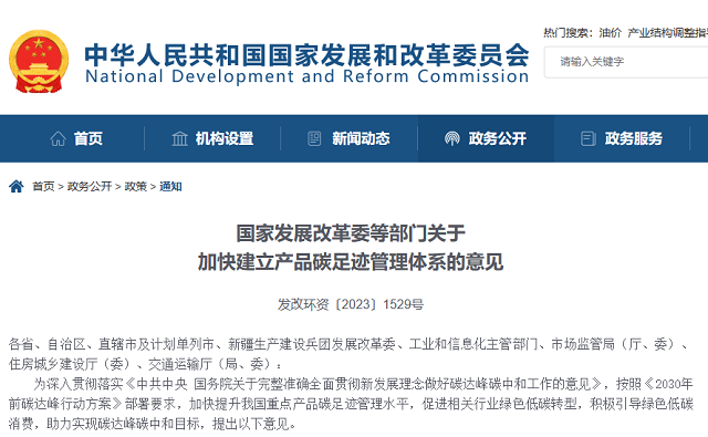 國家發(fā)改委加快建設(shè)產(chǎn)品碳足跡