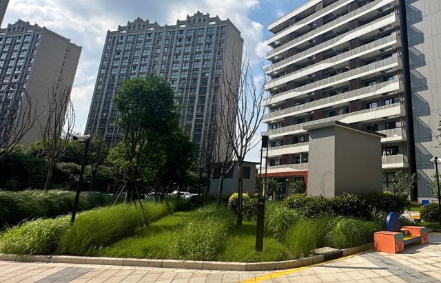 這一項目遵循“社區(qū)+海綿”理念,綜合景觀效果和場地條件,選用適宜的海綿城市技術(shù)措施,形成“透水鋪裝、植草溝引流+生物滯留設施消納”的雨水徑流組織形式,并加入雨水回用設施,優(yōu)化場地雨水排水條件,減少地面徑流,強化蓄水能力,控制污染物外排,增加雨水回收利用,實現(xiàn)水安全、水環(huán)境、水生態(tài)、水資源等4方面協(xié)同提升。