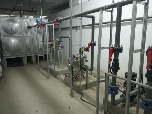 建筑內(nèi),也“別有洞天”——設置雨水回收系統(tǒng),收集屋面及道路雨水后,采用“就地預處理單元+生化處理系統(tǒng)”工藝將凈化后的雨水輸送到清水箱中,用于場地內(nèi)綠化的澆灌,以“水循環(huán)”實現(xiàn)水資源高效利用。