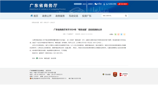 廣東省商務(wù)廳關(guān)于2024年“粵貿(mào)全國”活動目錄的公示