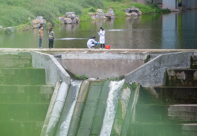 生態環境工作人員在江北區溉瀾溪入江口開展水質監測。張錦輝攝