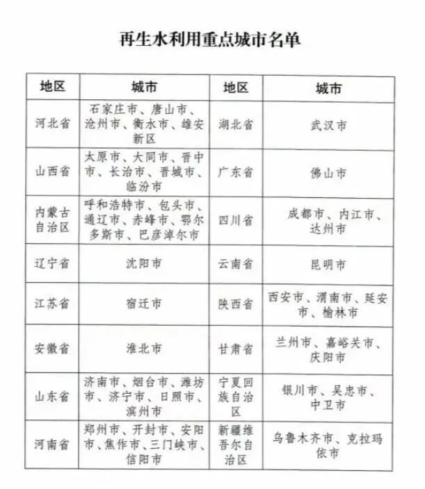 近日,國(guó)家發(fā)展改革委辦公廳、住房城鄉(xiāng)建設(shè)部辦公廳和水利部辦公廳聯(lián)合印發(fā)了《關(guān)于印發(fā)再生水利用重點(diǎn)城市名單的通知》(發(fā)改辦環(huán)資〔2024〕601號(hào)),共50個(gè)城市入選。