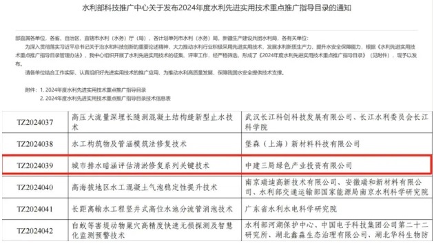 中建三局綠投公司一項成果入選2024年水利部先進技術重點推廣指導目錄