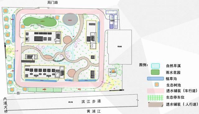 蒙自泵站擁有三個“第一”——上海第一座多功能生態(tài)排水泵站,第一座開放式的花園泵站,是全國第一座排水文化公園。上海市排水公司負(fù)責(zé)人介紹,蒙自泵站除了雨水泵、截流泵、調(diào)蓄池等排水設(shè)施外,還用雨水花園、透水道路等不同海綿構(gòu)件形成海綿調(diào)蓄,完整地還原水在社會中“使用、排放、收集、處理、回歸”的循環(huán)過程。