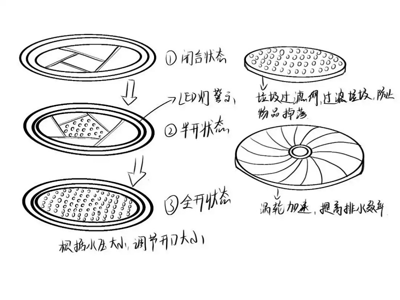 《智雨安行》以前瞻性思維為智慧城市建設(shè)中的城市排水難題提供了創(chuàng)新解決方案。該設(shè)計(jì)從井蓋材質(zhì)、排水技術(shù)及相關(guān)電子傳感技術(shù)入手,突破性地將機(jī)械結(jié)構(gòu)與電子傳感技術(shù)融合,提出“可變孔徑”設(shè)計(jì)理念。該設(shè)計(jì)使井蓋開(kāi)口能根據(jù)實(shí)際水壓自動(dòng)調(diào)節(jié)大小,靈活應(yīng)對(duì)不同強(qiáng)度降雨;同時(shí)集成LED警示環(huán)與安全傳感器,實(shí)時(shí)監(jiān)測(cè)井蓋狀態(tài),異常時(shí)立即預(yù)警,構(gòu)建起真正“會(huì)思考”的排水系統(tǒng)。“讓城市即使在極端天氣下仍保持‘呼吸’暢通”,在潘一博的設(shè)計(jì)構(gòu)想中,井蓋是能感知環(huán)境變化、自主響應(yīng)的“智能衛(wèi)士”,同時(shí)滿足排水效率與公共安全雙重需求。