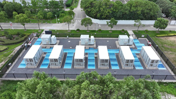 儲能項目:智慧調控實現“削峰填谷”與安全運行 竹園7.5兆瓦/20.64兆瓦時儲能項目位于竹園污水公司(浦東新區高東鎮東電路160號)西北角,占地面積約940平方米,采用室外集裝箱式布置,由6臺3.44兆瓦時儲能電池集裝箱(含磷酸鐵鋰電池、EMS、BMS、熱管理系統及消防系統等核心設備)和3臺2.5兆瓦變流變壓一體機組成,經過電纜接入3號、4號主變6千伏母線側。項目于2024年5月30日開工,9月29日啟動設備試運行,2025年8月29日完成竣工驗收,運行初期即展現強勁效能。